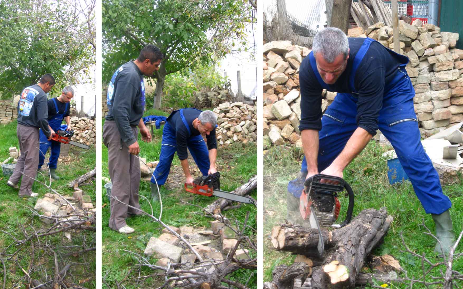 dok sam se ja baštom bavila, u prednjem delu je tekao čas upotrebe motorne testere, učitelj Duša i učenik Bojan… isekli su staru jabuku i ringlove, kao i jedan dud koji nije bio tako star, ali je smetao komšijama :(