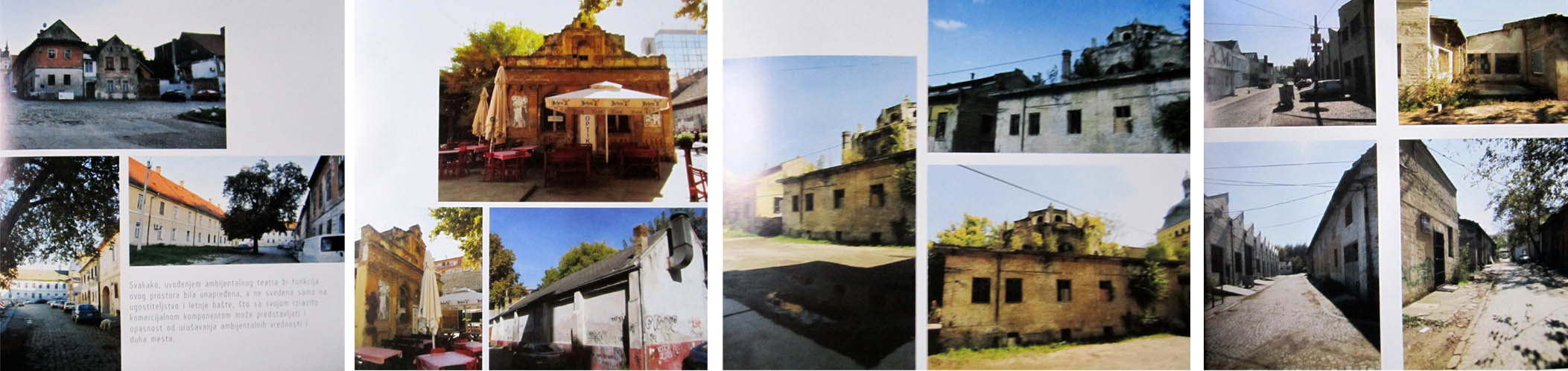 Scenatoria, udruženje koje se bavi umetnošću, arhitekturom i kulturom, u saradnji sa Gradskim zavodom za zaštitu spomenika, mapiralo je neke zanimljive ambijente u objektima pod zaštitom, koji bi se mogli mogla oživeti i postati ambijentalni teatri… za jednu Novosađanku, potpuno je neverovatno da ne poznajem: železnički tunel na Petrovaradinskoj tvrđavi, vojne hangare u blizini tunela i barutanu “Josif”…02 scenatoriaipak, sa ostala četiri odabrana ambijenta sam se izvukla: plato ispred ugla Prote Mihaldžića 14 i V.Nazora 5 na Petrovaradinu, stari bioskop Korzo u Zmaj Jovinoj 4, staro kupatilo jodne banje i kineska četvrt…03 scenatorianadam se da ovo neće ostati samo jedna lepa publikacija, predlog, ideja; nego da će mlada i zanimljiva ekipa ljudi (Katarina Dajč, Ivana Volić) napraviti i neke konkretne intervencije. (uh, ova praksa ubila je u meni arhitektu, a rodila praktičara koji misli da svaka, makar i najmanja stvarna akcija ima mnogo veću težinu od bilo kakvih studija… sreća, pa ne misle svi kao ja :)
