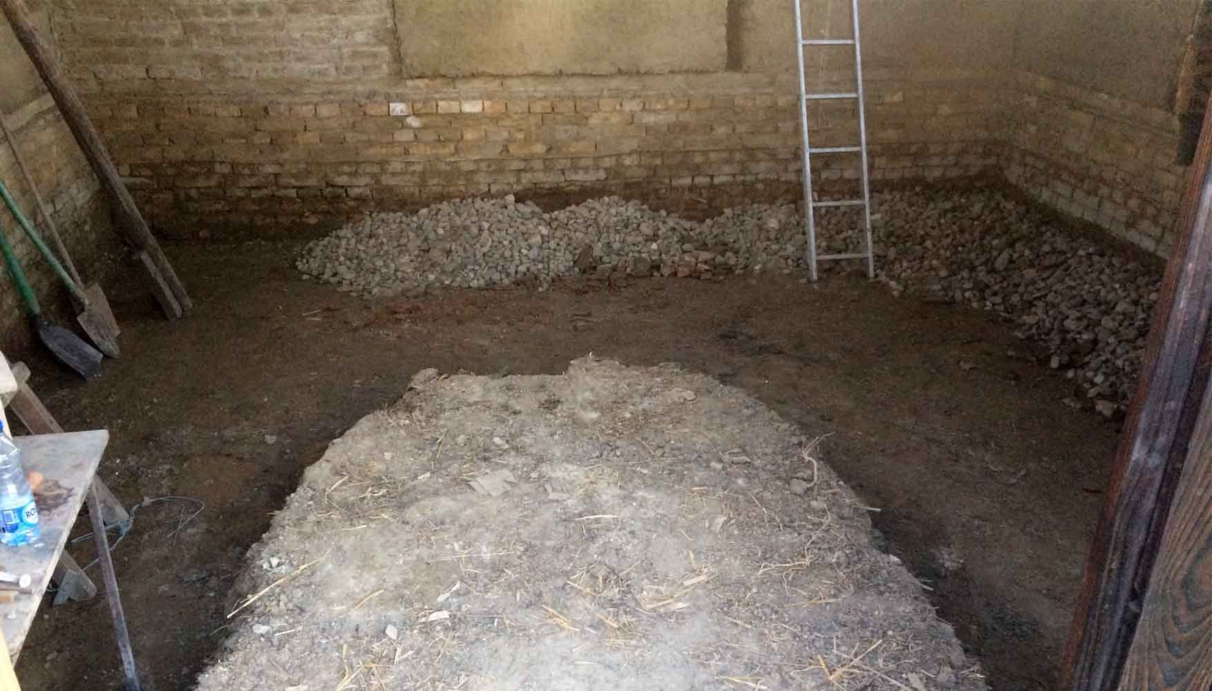 u međuvremenu, Duša je iskopao pod u radionici i počeo postavljanje iberlaufa (na njega ide geotekstil, sloj peska i opeka – uskoro poziv i za ovu radionicu.)
