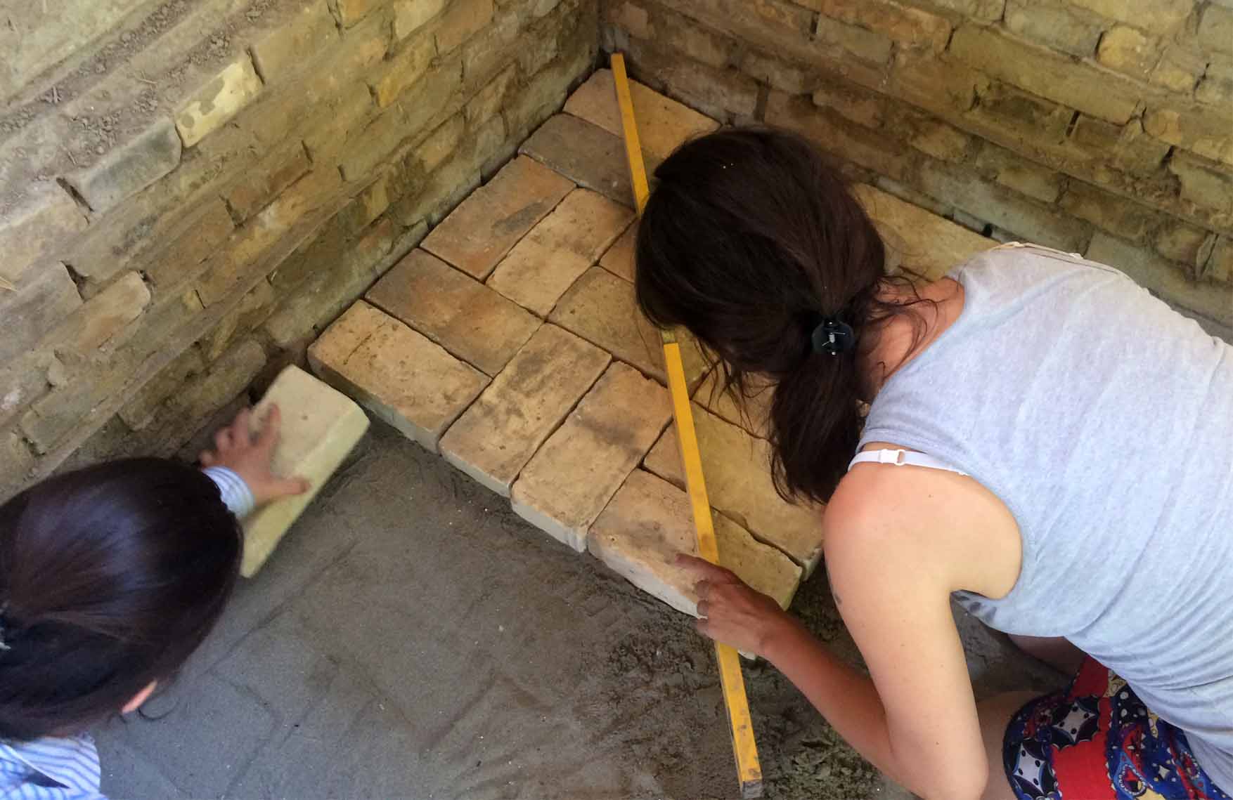 a u subotu popodne stiže pojačanje iz Bijeljine, pa se odvažujemo da, ipak, pokušamo popločavanje bez vibro ploče i ostalih saveta majstora, na žensku intuiciju…