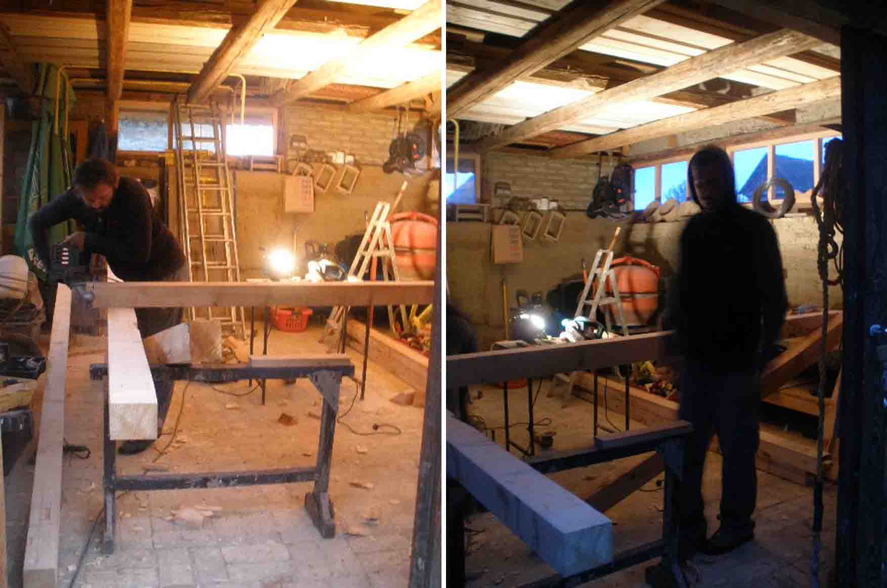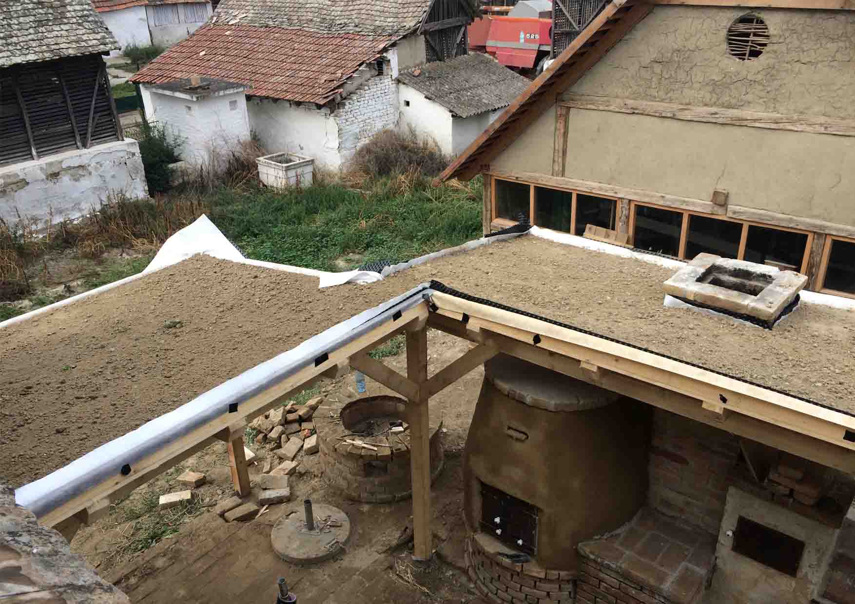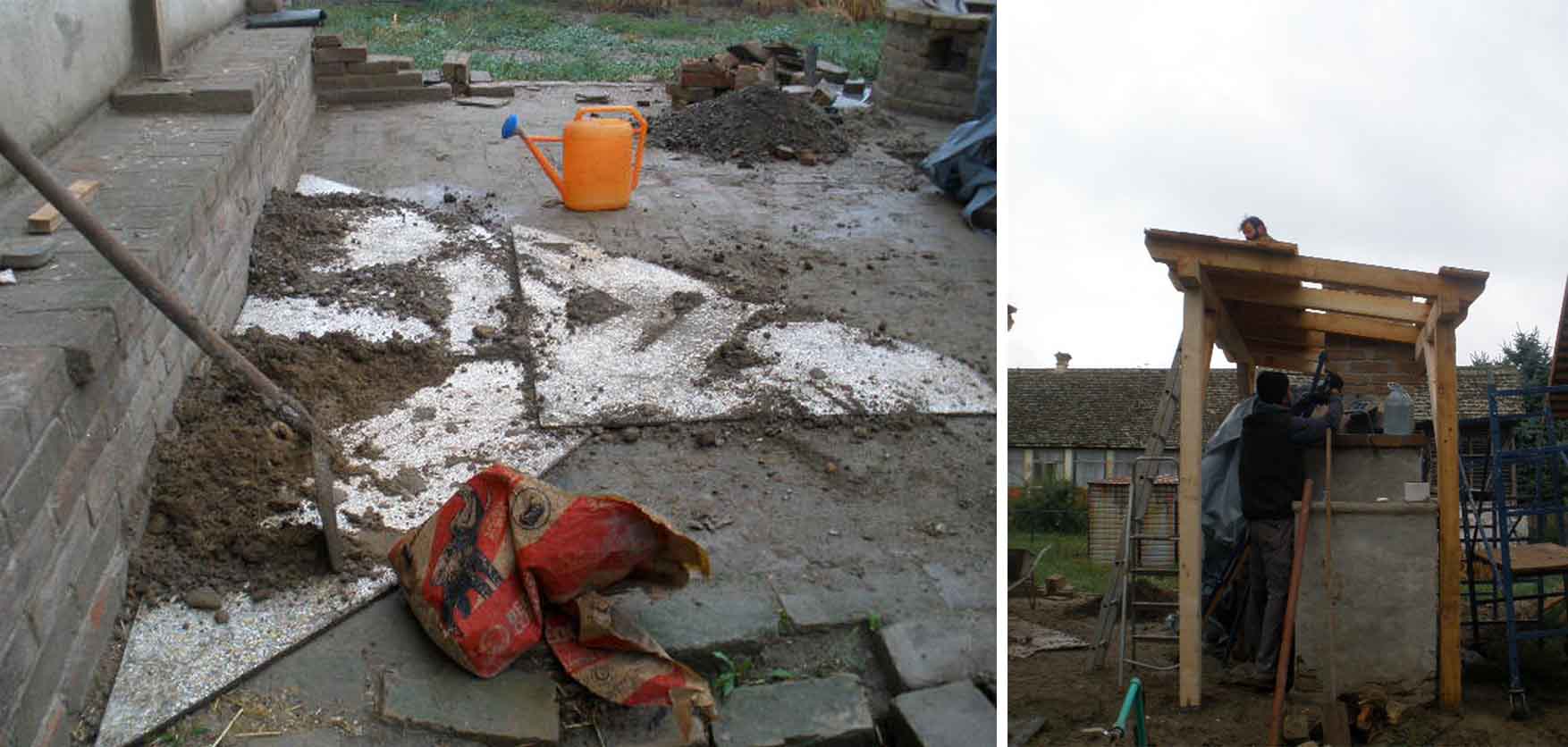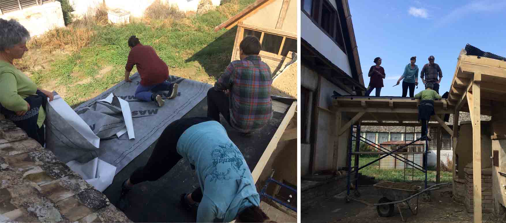 ujutru stiže RTS ekipa, a mi, sa Majom, Sašom, Anom i Jelicom radimo drugi deo nadstrešnice – ostaju zaštitne letvice, opšivka oko odžaka i kamenje koje planiramo postaviti pri obodu…
