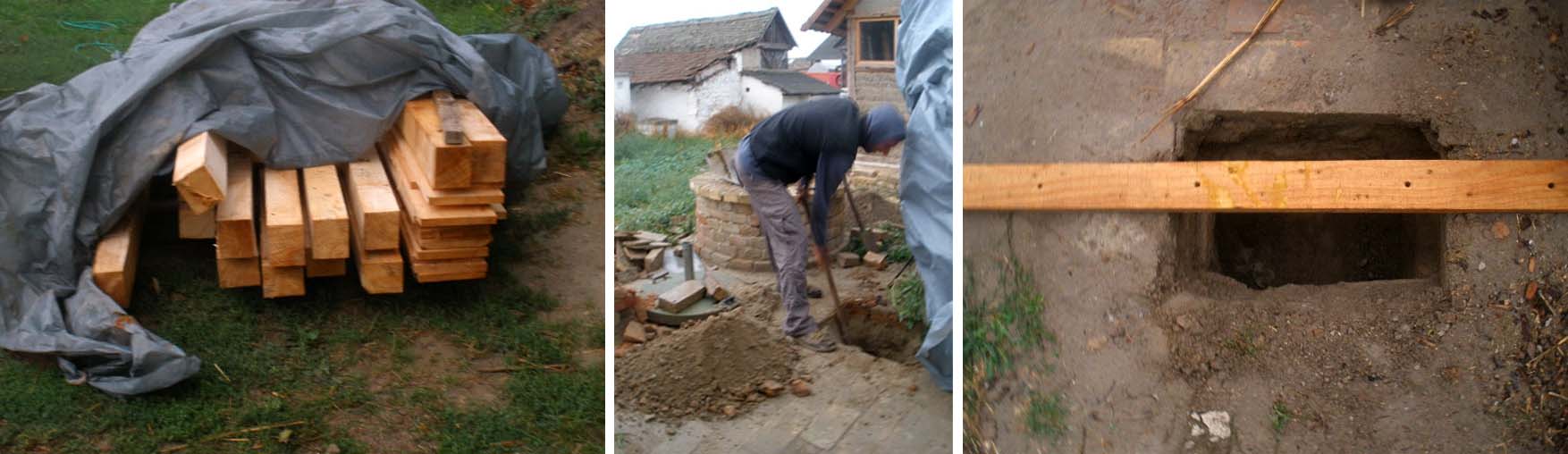 drugog dana, situacija je još gora – prave se temelji, a kako Mićko zna da kod nas mora što prirodnije, ne liju betonske temelje, nego prave stabilizovani naboj (sa oko 10% cementa.) videćemo kakvi su rezultati, za sad se držimo :)