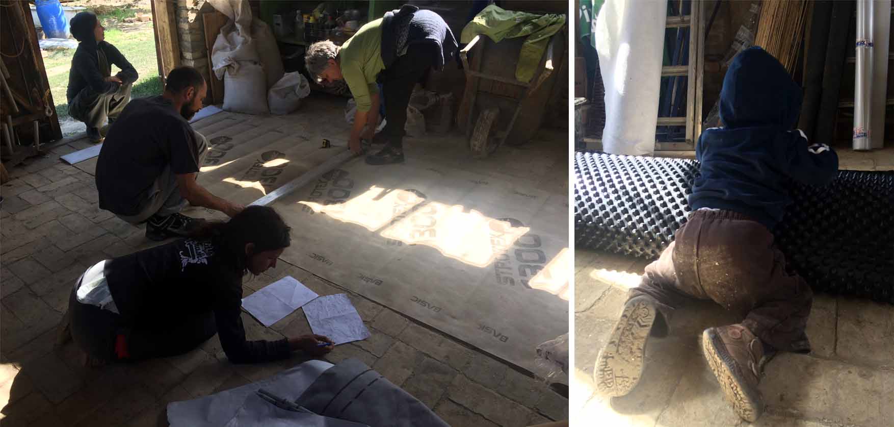 kiša, konačno, staje u petak popodne, ali ne i majstori :) do Bojanovog dolaska, sve je bilo gotovo. svi smo odahnuli :) međutim, kako smo tokom samih radova prilično modifikovali i povećali nadstrešnice, u petak uveče, kad smo legli, shvatam da nemamo dovoljno čepaste folije za radionicu… a pre toga nam nisu poslali ni geotekstil iz Beograda, tako da posebna zahvalnost ide za ArchiBox-u iz Zrenjanina za geotekstil i tata Draganu za čepastu foliju, inače ne bismo mogli dalje!
