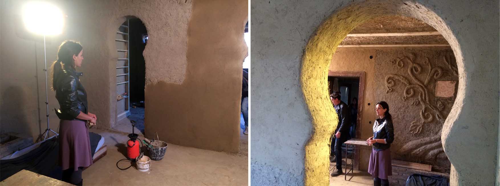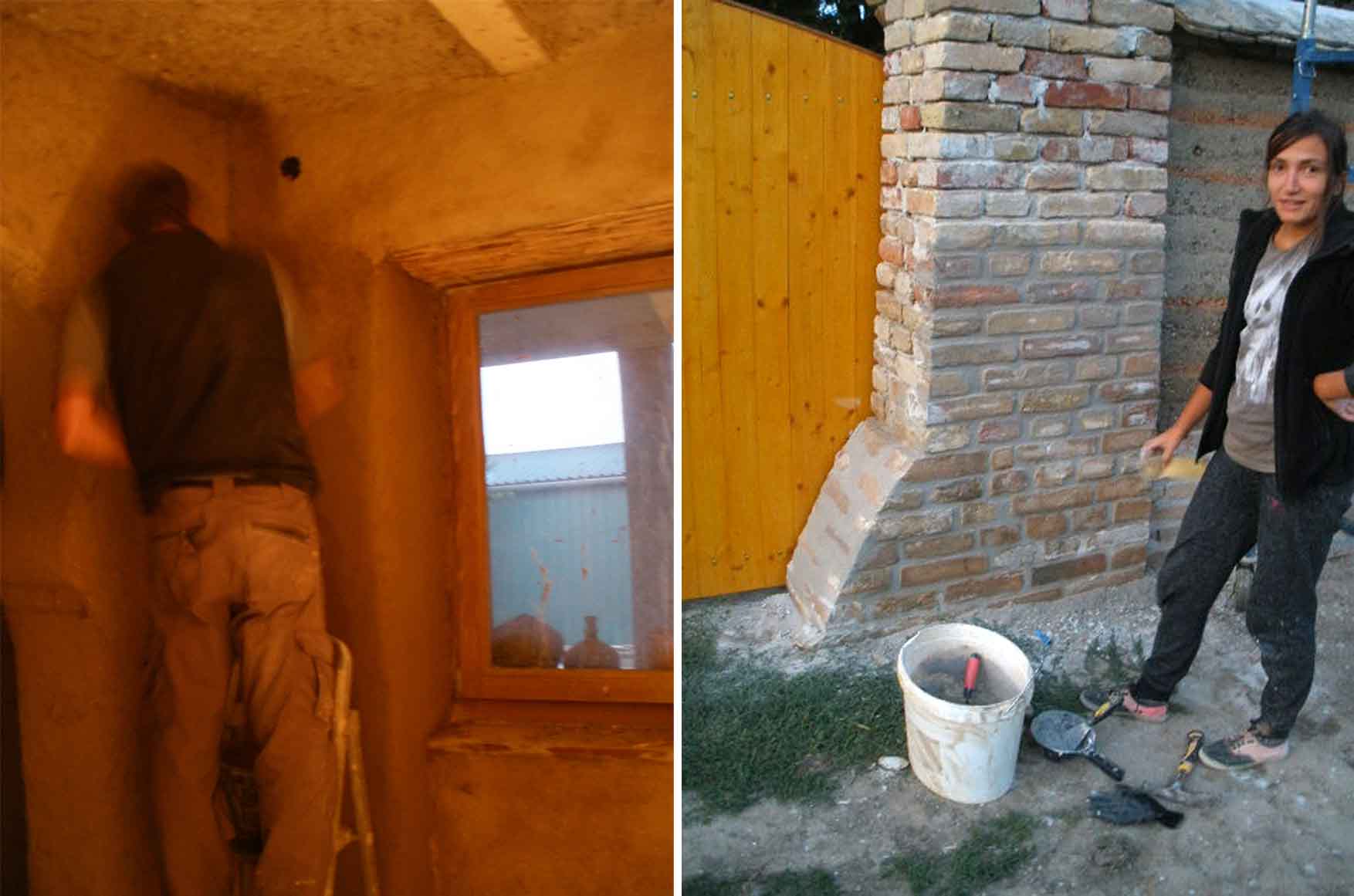 u sredu stižemo sa zrenjaninske i novosadske strane, ja radim testove tadelakta i lepljenje kuhinjskih pločica blatnim malterima…