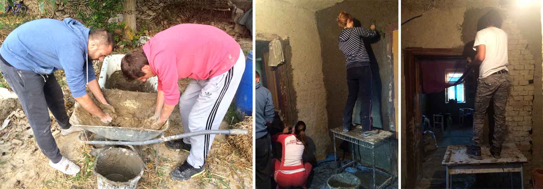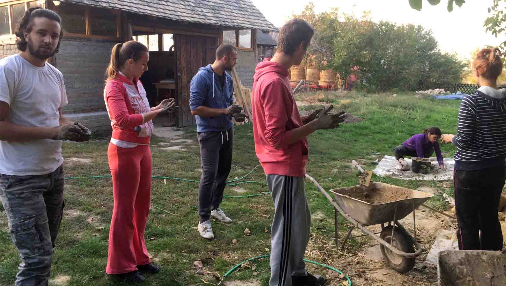 radili su blatne maltere u hodniku: prvo zemlja-slamu, pa potom zemlja-plevu-pesak. šteta što je već jesen, što se brzo smrkava, ali, ako je sudeći po ovim mladim ljudima – ipak ima nade za nas :)