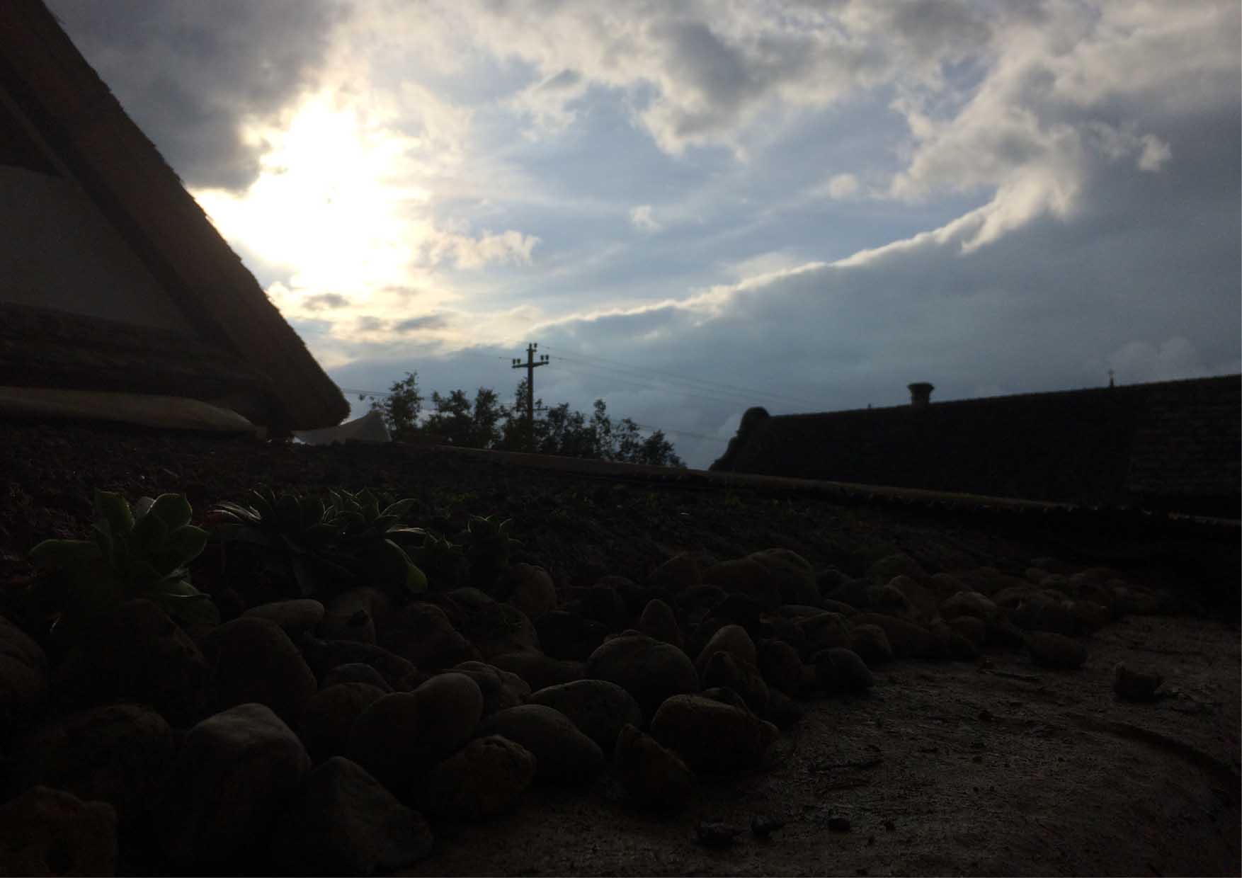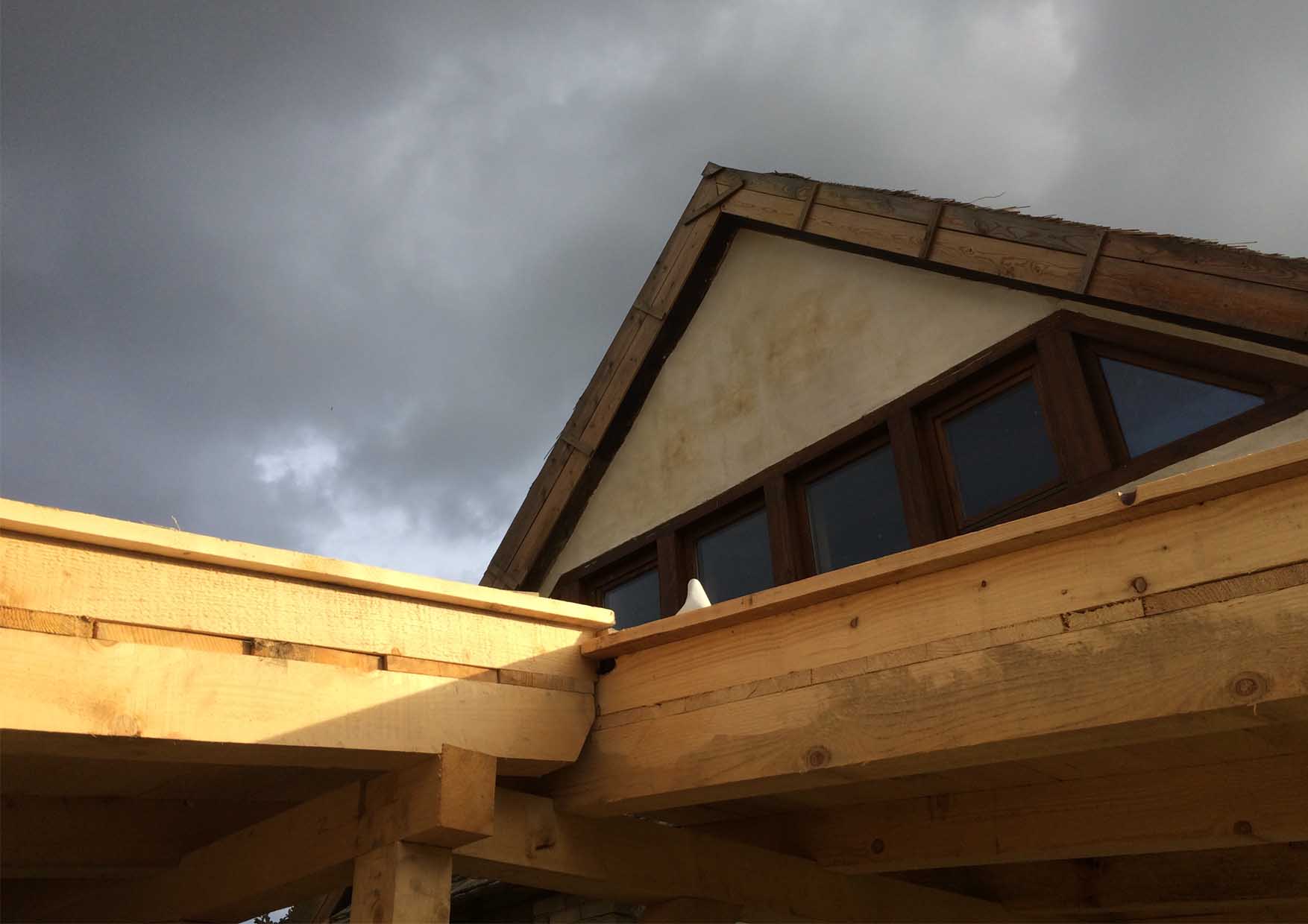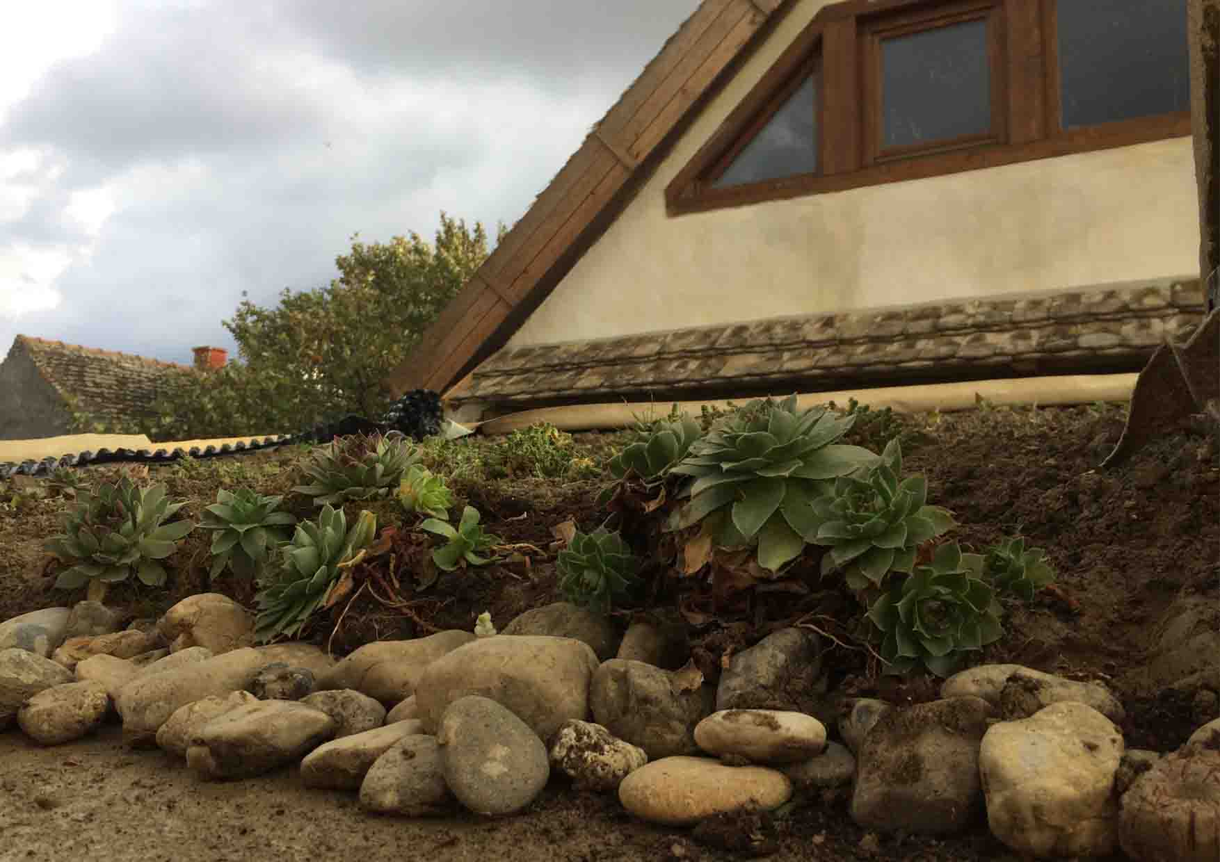 Bojanov zadatak za danas je bio da dogovori i obeleži septičku jamu… ja sam se prihvatila da, konačno, završimo zeleni krov: skinemo dve grede koje smo privremeno stavili, opšijemo drvetom ivice, skinemo poslednji sloj zemlje i, umesto njega, stavimo iberlauf…