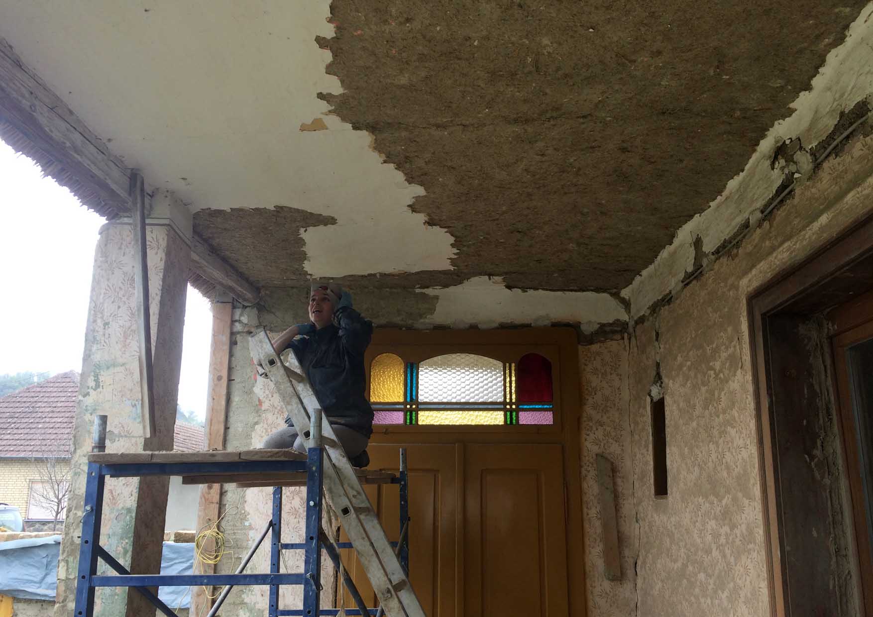 ja sam počela, nadam se, moje poslednje guljenje kuće – plafon u tremu.