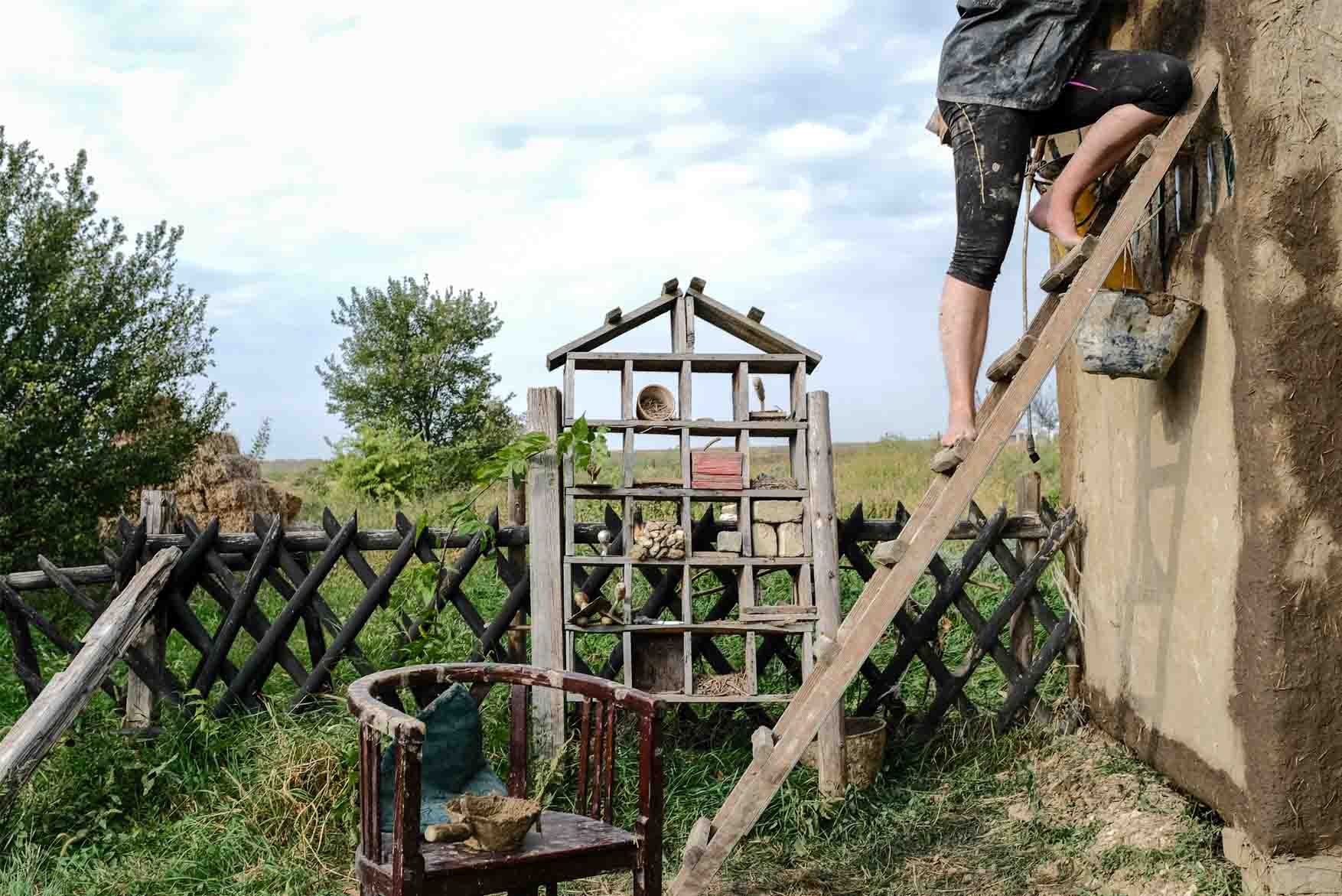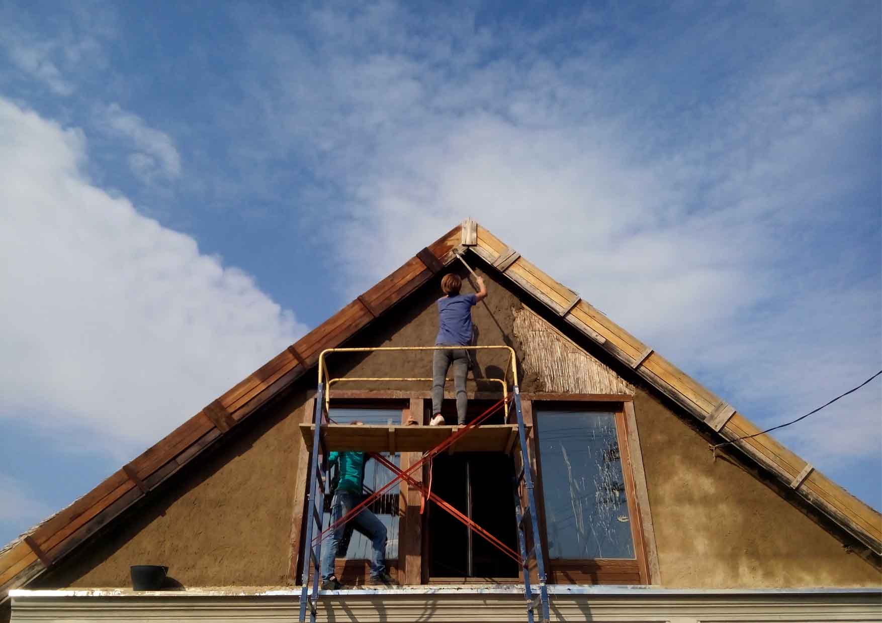 narednog pomaže u postavljanju skele, pa devojke malterišu trouglove :)