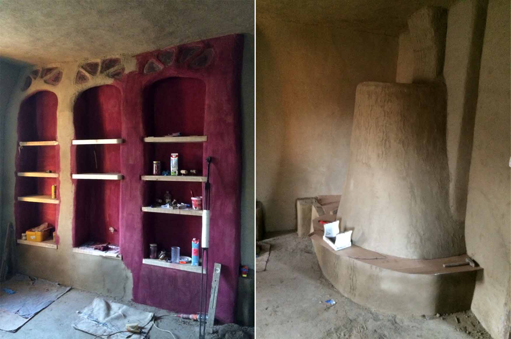 i “goje” dve centralne police, kako bi primile Bojanov radio. i uzimaju mere za banak oko pećke :) a ja za četiri dana nisam stigla ni policu da ofarbam :(