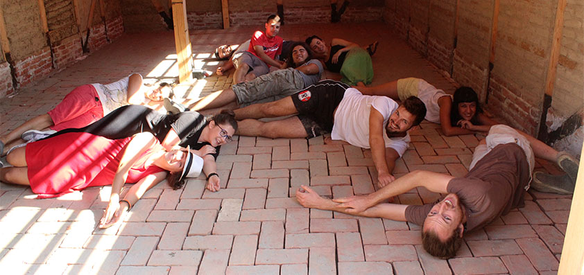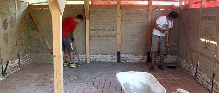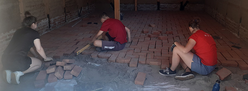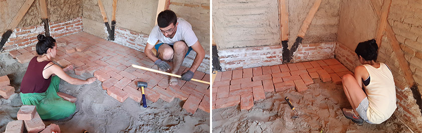 učesnici su se podelili u dve grupe, da ne bi bila gužva, a i zbog celokupne situacije – dok su jedni popločavali, drugi su malterisali potkrovlje.
