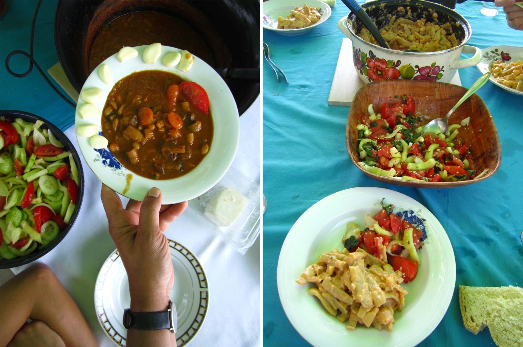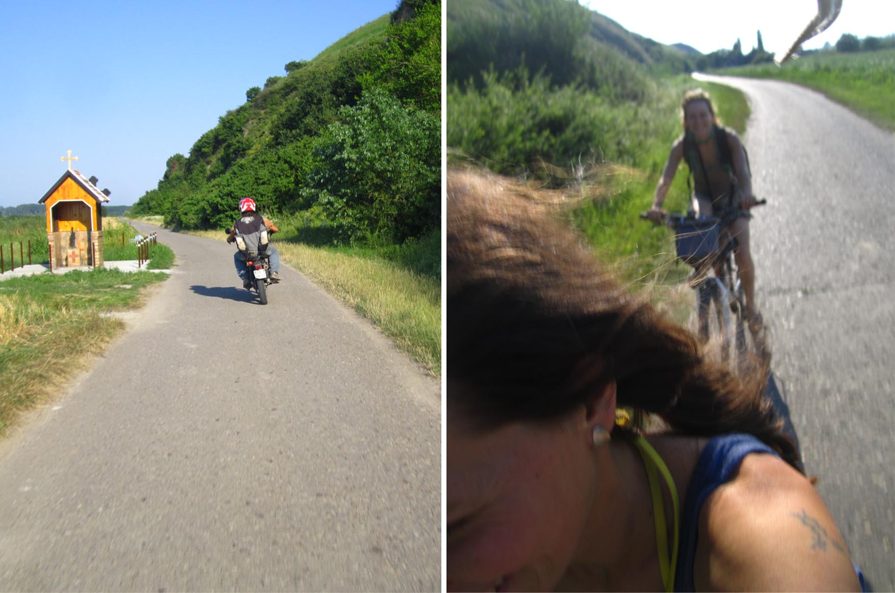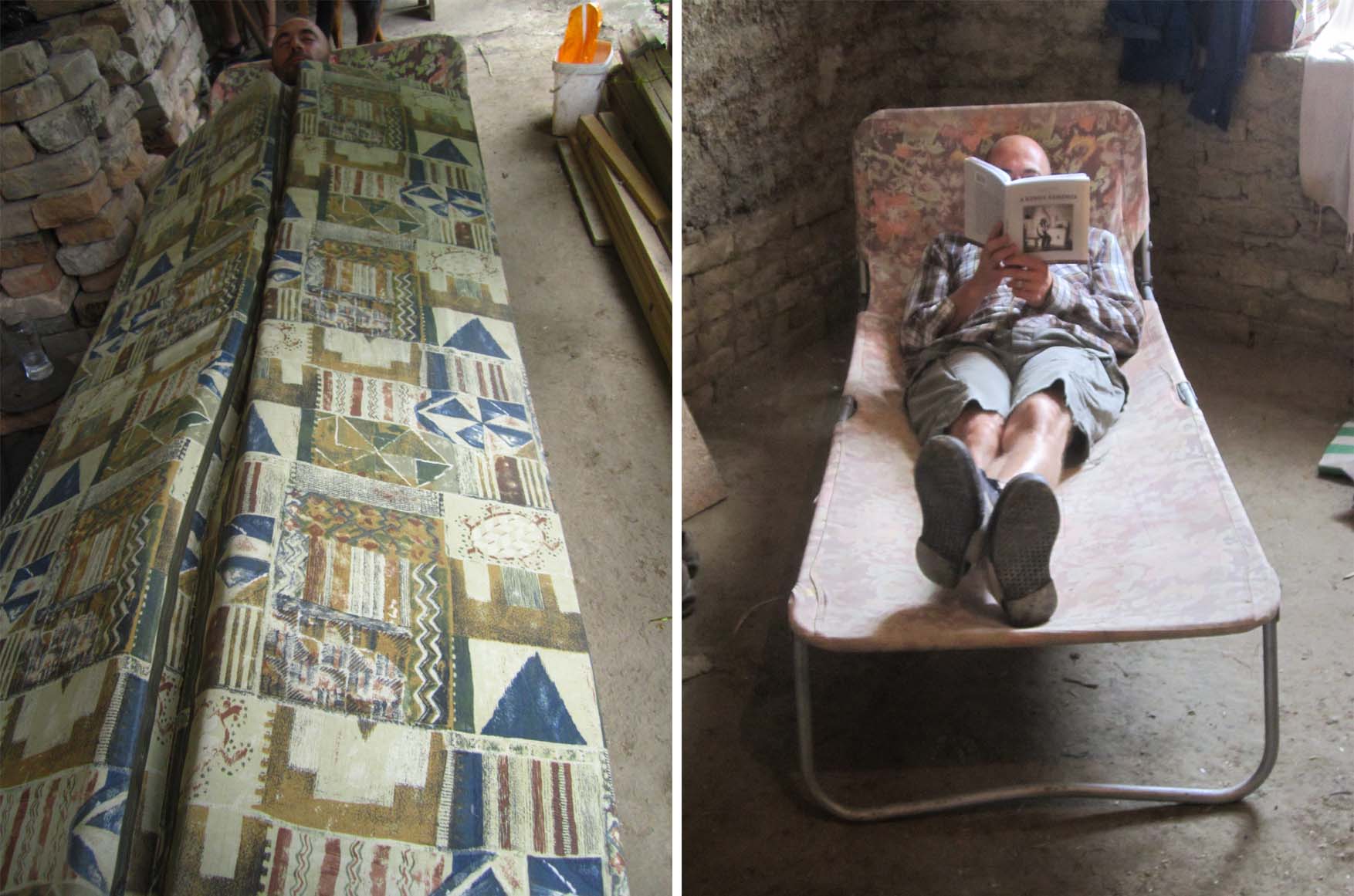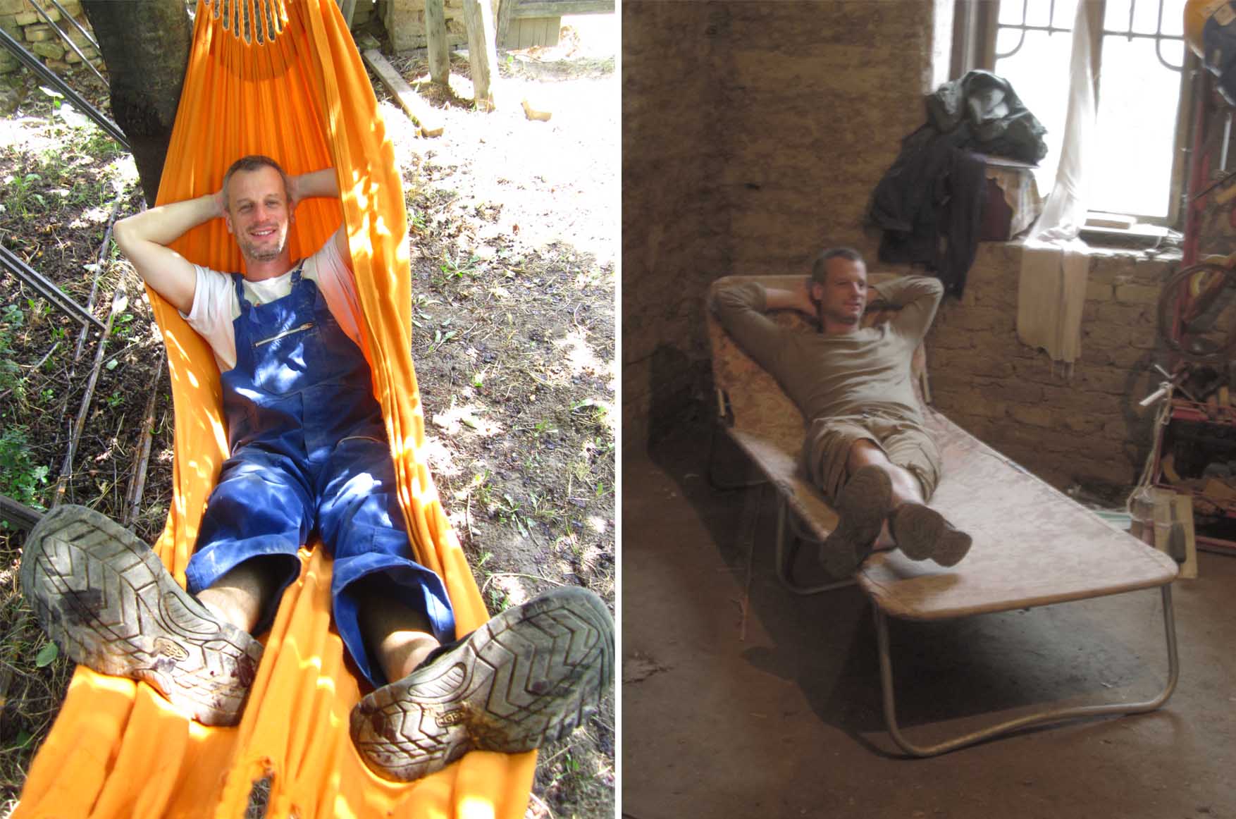 ali, pre zidanja šporeta, bilo je potrebno da se (konačno) iseku naši potkovičasti lukovi, što je bio izazov u svakom pogledu! kako zid nije izgledao u najsjajnijem stanju (a pogotovo što se iznad jednog otvora nalazi dimnjak), odlučili smo da iznad otvora postavimo drvene nadvratne grede – što nije bio nimalo lak zadatak, jer je malter bio toliko loš da su nam ćerpiči iznad otpadali… Vinkić i Julian najzaslužniji su što je taj deo brzo i efikasno obavljen, uz pomoć Bojana i Zvonka!45 secenje zida Mosorin jun 2014nakon toga, počeli su sa sečenjem samih otvora, što je bilo jednako uzbudljivo kao i prethodno. 46 secenje zida Mosorin jun 2014trudili su se da iseku i sačuvaju što veći broj ćerpiča…47 secenje zida Mosorin jun 2014i konačno – naši mavarski lukovi su ugledali svetlost dana, kao što je i kuća dobila mnogo više svetlosti ovom intervencijom :) naravno, potrebno ih je još lepo doterati i isekati, što je Vinkić pokušao i testerom, ali biće vremena i za te detalje…48 secenje zida Mosorin jun 2014e, kad su oni sve to tako lepo pripremili, lako je bilo majstoru da započne zidanje šporeta… 53 zidanje sporeta Mosorin jun 2014zidanje prvih redova…54 zidanje sporeta Mosorin jun 2014 pa smo već odmakli…55 zidanje sporeta Mosorin jun 2014ako i nije od zemlje, bar radimo blatnim malterima :)56 zidanje sporeta Mosorin jun 2014 jedna rupa za ogrev, drugu smo ispunili!57 zidanje sporeta Mosorin jun 2014 da vidimo gde nam dođe šporet, a gde “lerna” :)59 zidanje sporeta Mosorin jun 2014e, sad kad smo došli skoro do kraja, ispalo je da će biti visoko za gospođu mene da kuvam, pa je suprug još jednom intervenisao :) iako meni ništa nije smetalo i sve je bilo dobro, garant ću mu biti zahvalna jednog dana…61 zidanje sporeta Mosorin jun 2014taman kad sam mislila da sve ide kao po loju, pokrenuta je nova diskusija – cev spolja ili zasecanje zida od ćerpiča i pravljenje odžaka… na Vladino i Bojanovo insistiranje, krenulo se sa usecanjem:62 zidanje sporeta Mosorin jun 2014 a potom je Palfi olepio odžak malterom i zatvorio biber crepom, kao što je to ranije bilo…63 zidanje sporeta Mosorin jun 2014“lerna” dođe levo, šporet desno, pa se prave kosine i ostavljaju otvori za cirkulaciju vazduha…65 zidanje sporeta Mosorin jun 2014 a naš šporet počinje da liči na to što treba…66 zidanje sporeta Mosorin jun 2014 samo još da kupimo tu famoznu metalnu ugradnu “lernu”, pa da je zatvore… inače, sve se ovo dešava 1.jula oko podne, kad ja već pakujem svoje prnje, ostavljam instrukcije Bojanu i Vinkiću i krećem put Rogljeva na radionicu… tako da ćemo nastavak videti i vi i ja u subotu 19.jula!67 zidanje sporeta Mosorin jun 2014a da ne bude da su samo majstori radili – i mi smo bili vredni! toalet je dobio svoj završni sloj, koga je samo još trebalo okrečiti. nažalost, kako nismo imali dovoljno vremena, plašim se da ga je kiša sprala i da ćemo morati da ponovimo… Bojan kaže da nikad neće biti gotov, a ja se setim onog japanskog hrama koga su rušili da bi ga ponovo sagradili i mislim da je to u redu…50 malteri Mosorin jun 2014i ne samo to – imamo još jednu lepu malu novinu:51 malteri Mosorin jun 2014prozore na toaletu, šta kažete :) ?! još par malih intervencija i biće to simpatični toaletić!52 konacno prozori Mosorin jun 2014a tek da znate kako se dobro jelo! najzaslužniji za to je naš dragi Vinko, bivši šegrt u zagrebačkom restoranu i majstor u pripremi sezonskih obroka!      69 klopa Mosorin jun 2014naravno, ni Francuzi nisu ostali dužni i začinili su (skoro svaki) obrok kamion-made sirom i “poule au pot” (ako se dobro sećam) ručkom:70 klopa Mosorin jun 2014jedan dan imali smo sjajni veggie i ne-veggie pasulj pripremljen od strane Vlade od Ruskog Krstura; kao i Vinkićevu sjajnu baranjsku buraniju tj.BAraniju ;)71 klopa Mosorin jun 2014iako nije bilo lako naterati nas sve u isto vreme na pauzu, bilo je zadovoljstvo provesti ove trenutke užitka zajedno! inače, veliku zahvalnost mesojedi iz ekipe duguju komšijama Olji i Vladi, koji su ih snabdeli piletinom:80 ruuuucak Mosorin jun 2014a ja bih, od 6 do 8 svako jutro, u tišini i miru, provodila vreme u mojoj bašti… do poslednjeg dana uspela sam sve da iskrčim i oplevim i moja bašta konačno je ličila na baštu (nažalost, nemam sliku; a do sad se, verovatno, vratila u prvobitno stanje!), a našla sam i neke neočekivane biljke – poput korijandera mog omiljenog, mirišljavog, divnog!72 korijander Mosorin jun 2014i prvih malina, ponosna ja :)))73 prve maline Mosorin jun 2014e, da ne bude da se samo radi, u subotu popodne smo krenuli i u ekipnu šetnju selom, u obilazak vile, crkve na bregu:81obilazak Mosorin jun 2014Bojan ih na bregu navodi na ludorije…83 Bojanove zeze Mosorin jun 2014usput naiđosmo i na kuću bliznakinju ovoj našoj, s tim da su ovde zadržali drvene stubove u tremu, što Bojan želi vratiti i kod nas…93 kuca kao nasa Mosorin jun 2014a i na jednu zanimljivost – komšija je od biber crepa napravio šare na sokli! možda nije u našem fazonu, ali je, svakako, zanimljivo i vredno pomena :)90 komsijski dizajn Mosorin jun 2014u nedelju smo išli u posetu jednom komšiji-inovatoru, 99 komsijska pec Mosorin jun 2014koji je povezao kaljevu peć i centralno grejanje97 komsijska pec Mosorin jun 2014i greje se na sojinu slamu! svaka čast :) 98 komsijska pec Mosorin jun 2014a potom smo se odvezli do Tise, jedni motorom, drugi biciklima, treći trčeći (Sajko): 95 motor bicikl Mosorin jun 2014a potom smo uživali na suncu i popodnevnom nedeljnom miru:96 Tisa Mosorin jun 2014jedan od najlepših i najpametnijihi pasa kojeg sam u životu videla – prosto da poželiš da ostane zauvek kod nas :)74 Francuzi i Sajko Mosorin jun 2014e, možda to nije realno, ali ovo svakako jeste – maca koja je uskočila kroz prozor (sa dve druge), a koju sam dva puta izbacila (jer su nervirale majstore) i koja se j