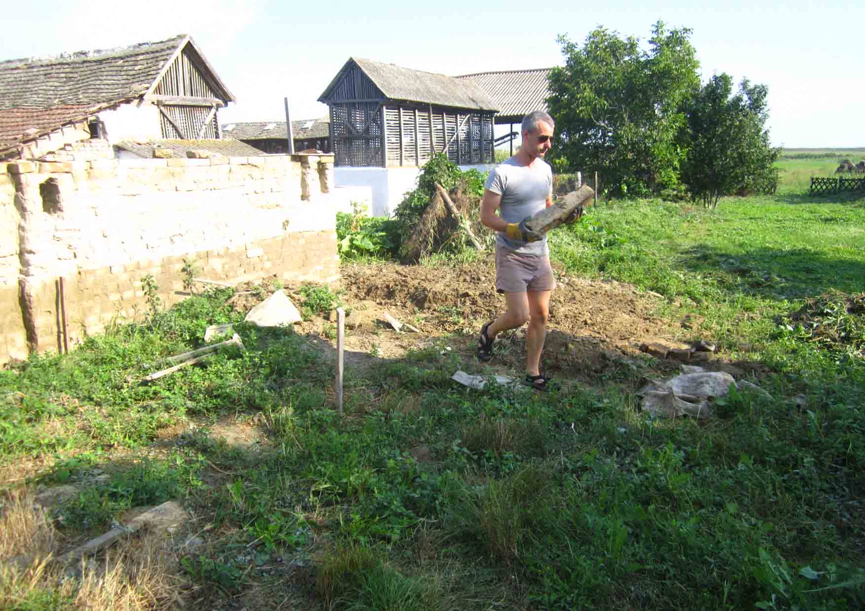 nastavili smo rad pre podneva, a Bojan nam je udario baš dobar tempo! do podneva je veliki deo platforme bio izravnat… prebacili smo kolica i kolica zemlje…