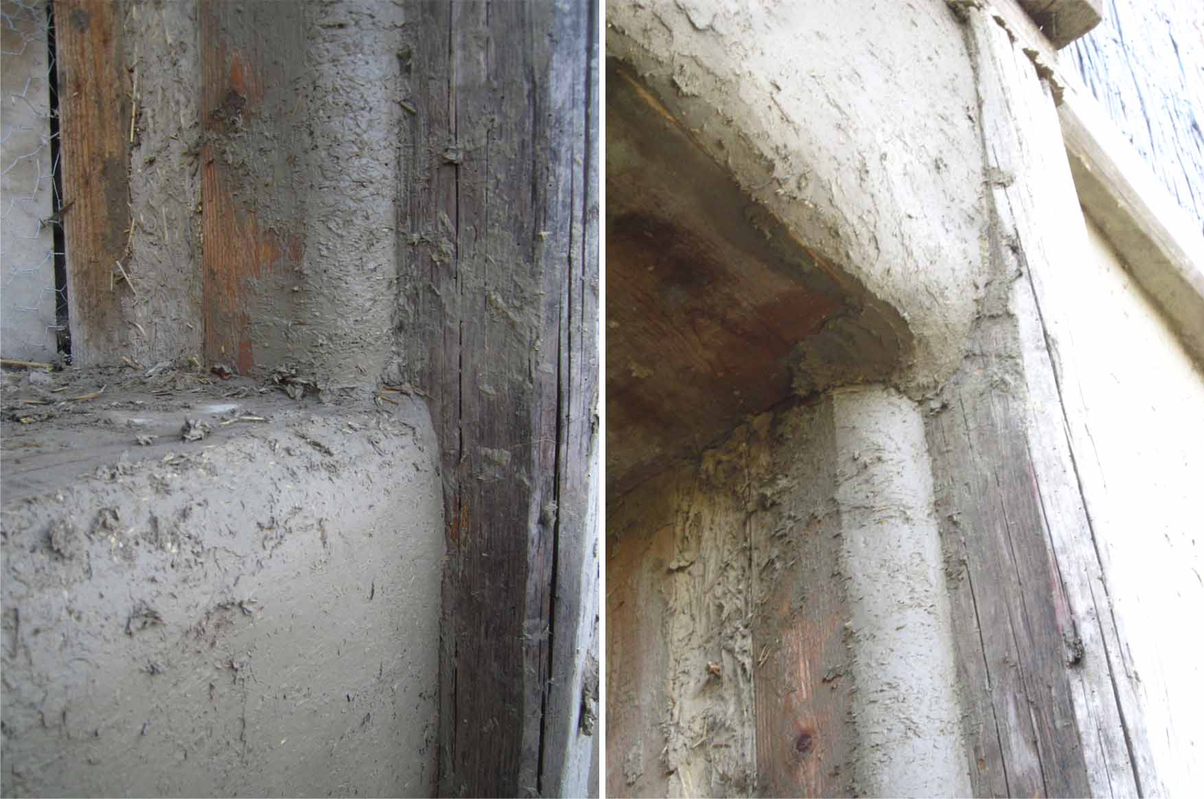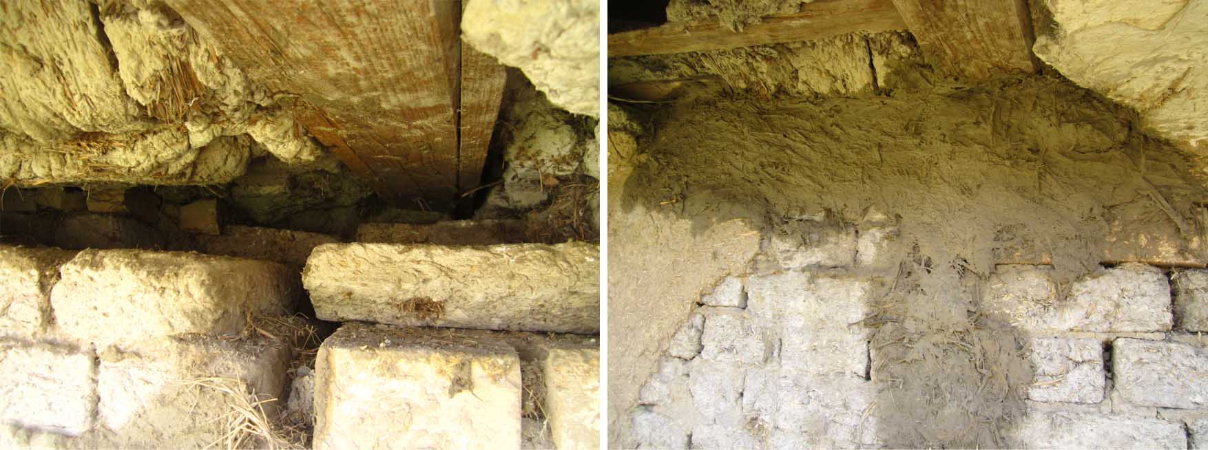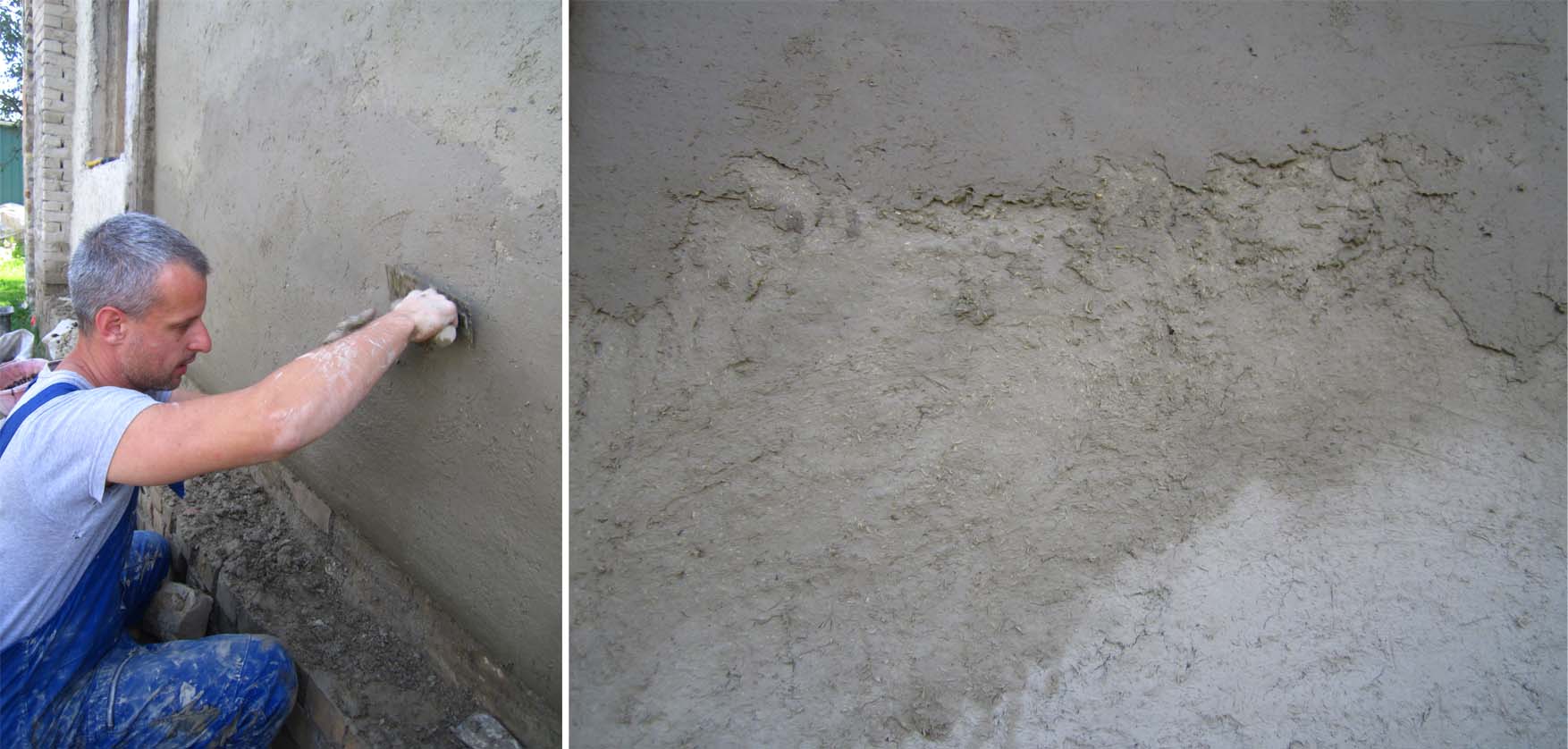 a moj malterisanje zapadnog zida prema komšijama… samo, pre malterisanja, trebalo je popuniti ove rupe(tine) – čini se da su ovaj zid radili iz delova i da su ovo bili spojevi… suviše uski da bi se ubacio ćerpič, ispunjavala sam ih mešavinom zemlja-slama, nabijala komadom armature (odnosno: letvicom), u zavisnosti od debljine. negde su bile duboke i do 40 cm…