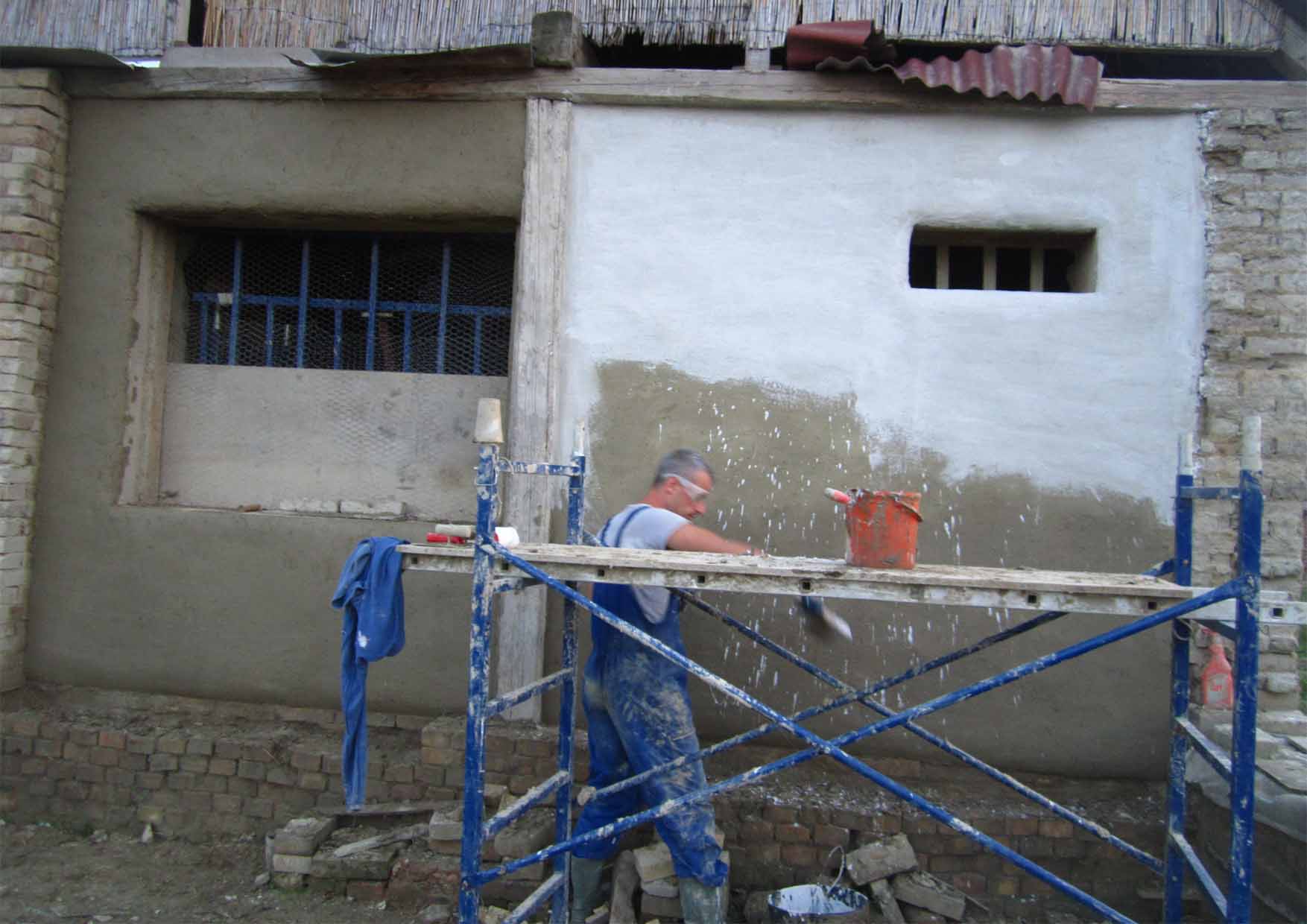 a onda smo krenuli u trku s vremenom: okrečiti zid pre mraka, tj.naneti prvi sloj (3kreča+1pesak) na još vlažan malter, kako bi se popunile sve neravnine…