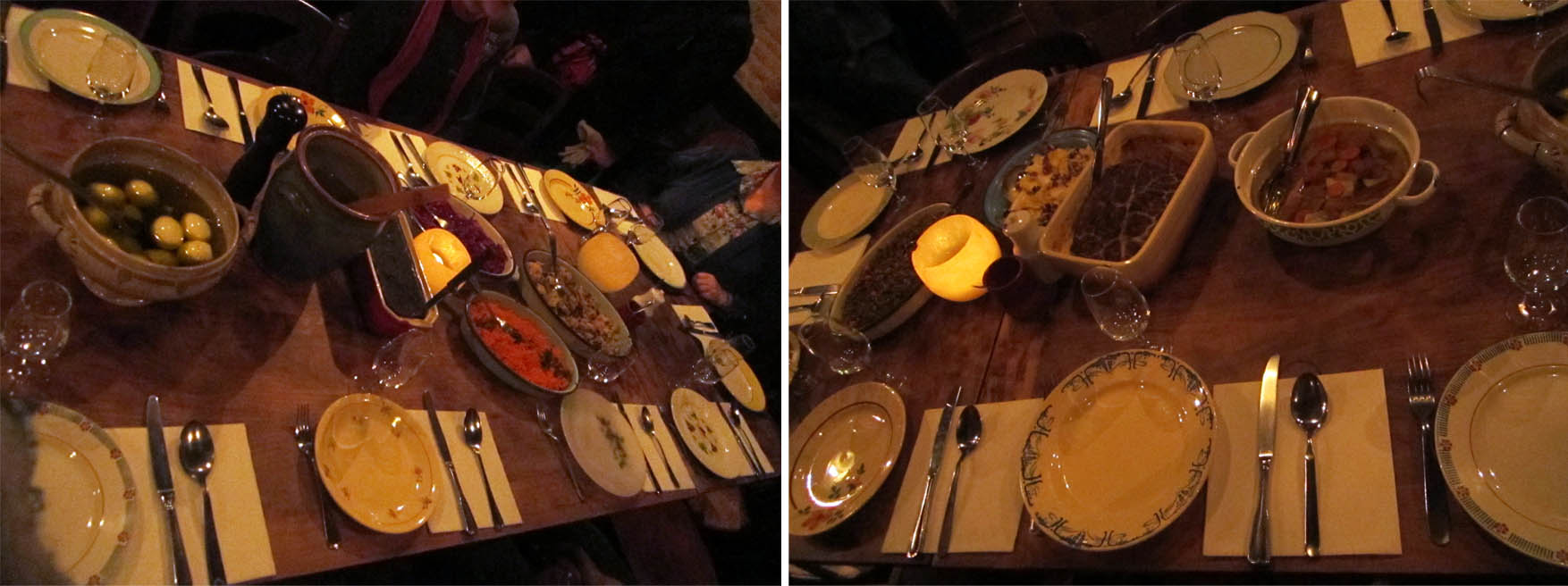 a ovo je bio poseban doživljaj (žao mi je što je prostor bio mnogo mračan), a i glupo bi bilo da sam slikala baš svako jelo (dok 20 gladnih čeka oko mene!) – neka vrsta švedskog stola u kome hranu razmeste po čitavom lokalu, a vi se šetate i birate…