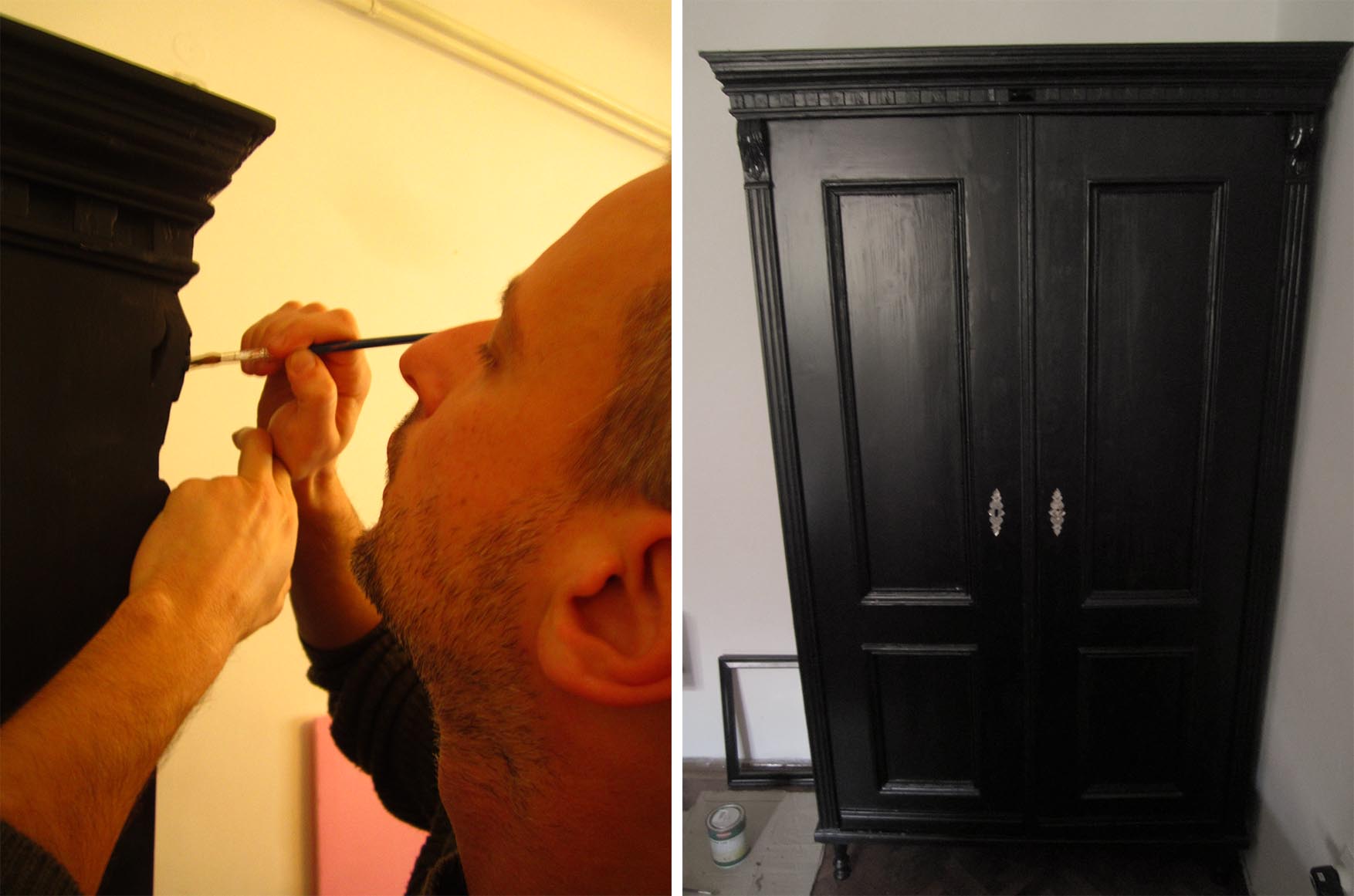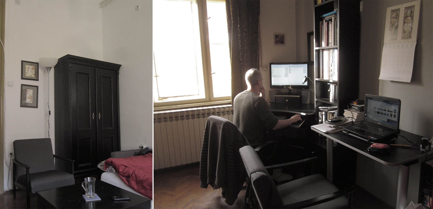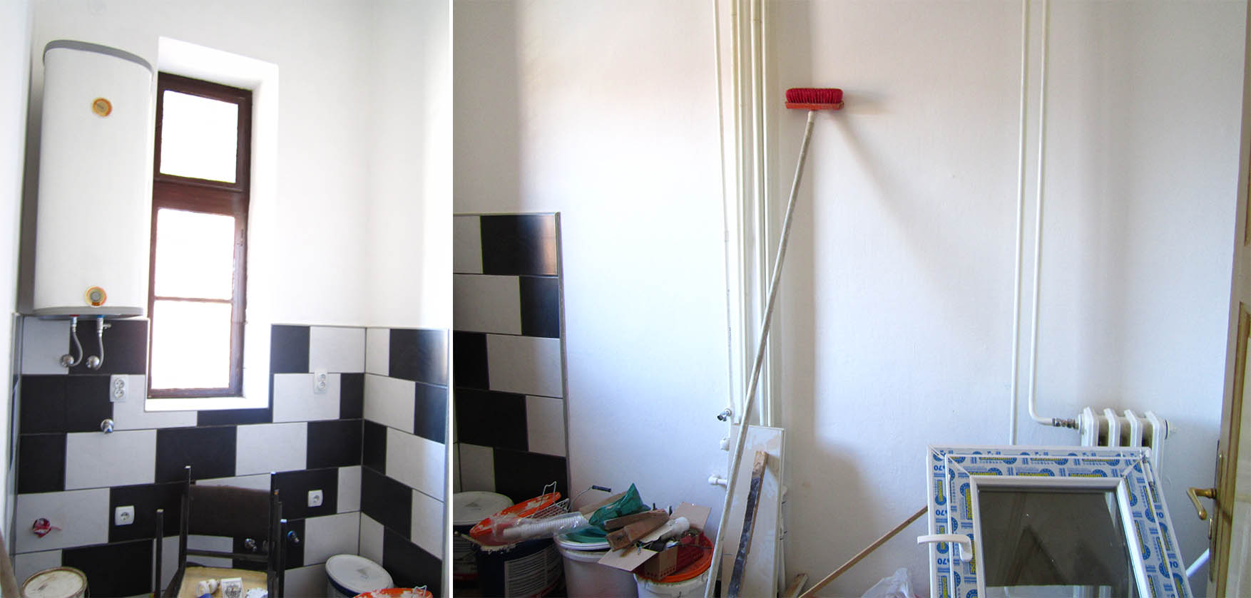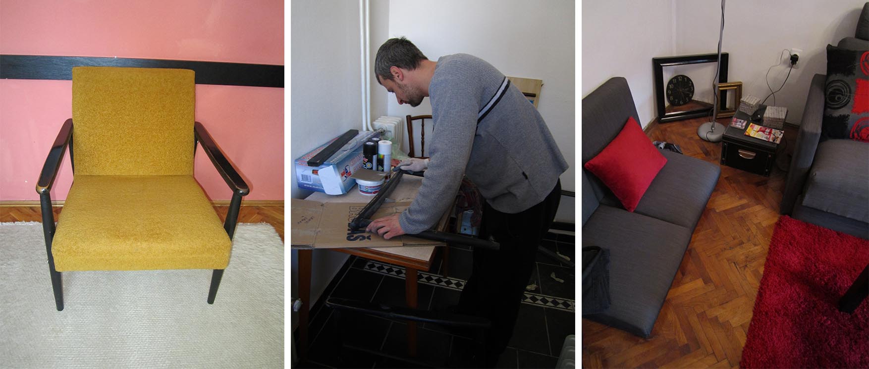 priča o Panjiju me je navela me da napišem još jednu, koju sam planirala odavno, ali, eto, nikad nisam našla vremena… o tome kako smo sredili iznajmljeni stan od tridesetak kvadrata, uz pomoć štapa i kanapa  :)00BOstan18još jednom – Bojan je odlučio da iznajmi stan i uzeo prvi koji je video :)19_ZRa pošto je stan bio prazan, doveo je svog ličnog arhitektu da mu da predlog kako da ga sredi…BOstan01inače, stan je dobijen pregradnjom, tako da, osim malog hodnika, kuhinjice i toaleta (koji više liči na plakar zbog kliznih vrata :), imamo još jednu veliku prostoriju.BOstan02e, sad, kako baš nismo imali sredstava za opremanje, ideja je bila da recikliramo sve što možemo… posle nekoliko ideja, moj investitor je odlučio da odobri ovo poslednje rešenje :)03BOstan29 ideja 204BOstan30 ideja 2od Bojanovih smo dobili stari ležaj, koji smo presvukli, BOstan04kao i dve stare fotelje – i one su presvučene, a drveni deo im je ofarban…BOstan05i na kraju su sklopljene :)BOstan5aosim toga, Bojan je u miraz doneo i svoj stari, sređeni ormar, a preko interneta je našao i komodu, koja je toliko ogromna da mene podseća na kamin, a koju su njegovi drugari Vesna&Vlada transportovali iz Apatina do Zrenjanina…BOstan6ormnaravno, trebalo je srediti i prozore da nam ne duva,BOstan09a ja sam, sasvim slučajno i više iz zezanja, Bojanu predložila zlatne retro zavese… na kraju se ispostavilo da je to bila super ideja, a i dobro su nam se uklopile u ambijent!BOstan17slike je Bojan dobio od Fanny, naše francuske umetnice.BOstan17sonda je došlo na red sređivanje kuhinje, koja je, takođe, bila prazna.06BOstan26 kuhinjaopet je investitor bio toliko zahtevan da sam morala da crtam svaki element posebno, dok nije dao konačno odobrenje :)05BOstan24dovukli smo jednu staru hoklu iz Mošorina, ofarbali je u crno i ona nam služi kao pomoć pri obuvanju-izuvanju.BOstan07hoklapotom smo na poklon od Bojanove koleginice Lole dobili dve stare Tonetice, koje smo nedeljama gulili, a potom ih je Bojan očistio, popunio šupljine gitom i spremio za farbanje!BOstan07toneticemajstor za farbu bio je njegov kolega Petrući, slikar-konzervator, koji ih je vratio u skoro savršenom stanju :)BOstan07t2kad su stolice bile gotove, čekali smo kuhinjske delove iz radionice majstor Save zrenjaninskog,BOstan10 kujnakojima smo dodali i malo dekupaža da ih razigramo ;)BOstan11 kujnate je naš viseći kuhinjski element konačno završen!BOstan12 kujnaa i polica je ispala bolje nego što smo očekivali!  BOstan14 kujnana kraju, kuhinjica je ispala ovako i bili smo baš zadovoljni!BOstan13 kujnatoliko da proslavimo useljenje :) iako ne možemo baš praviti gozbe, niti pozvati ljude na pravi ručak, s nogu uvek može da se gricne ;)BOstan21 proslava useljenjahteli smo čak da napravimo i mali šank i barske stolice na terasi ispred stana – šank je odavno gotov, ali stolice još nismo našli…07BOstan25 ulaznapravili smo i malu galeriju u hodniku… BOstan16a nedavno smo, kad sam zvanično postala Zrenjaninka, rešilli da donesemo stari ormar iz Mošorina, pa ga je Bojan nedeljama gulio kod Igora u radionici …BOstan22na kraju je ofarban (doduše, nedostaju mu još lakirane tufnice, ali i to ćemo već jednom srediti) i donet u stan!BOstan23i super se uklopio u naš ambijent! i ne samo to, dobila sam i svoje radno mesto uz Bojana!BOstan31 postojeceeto, ako ne bude posla ovde, bar smo se izveštili kao majstori i možemo da se bavimo “uradi sam” poslovima bilo gde…BoStan101još da mi je da ovako skućimo i Mošorin :)