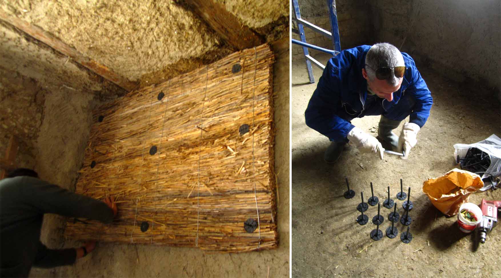 fiksiranje trske, olepljivanje delova između smesom “zemlja-slama”:
