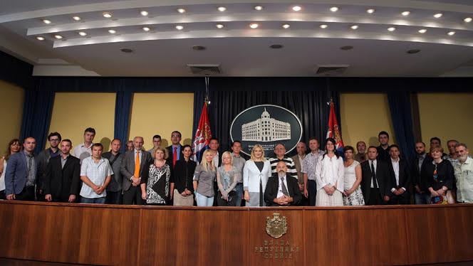 zvanično potpisivanje ugovora bilo je 25.juna u Vladi Republike Srbije, a budući da smo prvi na listi odobrenih projekata, bilo je potrebno da se obratimo prisutnima :) zbog tih par rečenica klecala su mi kolena i pre i par minuta posle :) još uvek smo u neverici i jedva čekamo početak realizacije projekta od 15.jula, o čemu ćemo vas detaljno obaveštavati, a vi se, nadam se, uključivati u isti :)