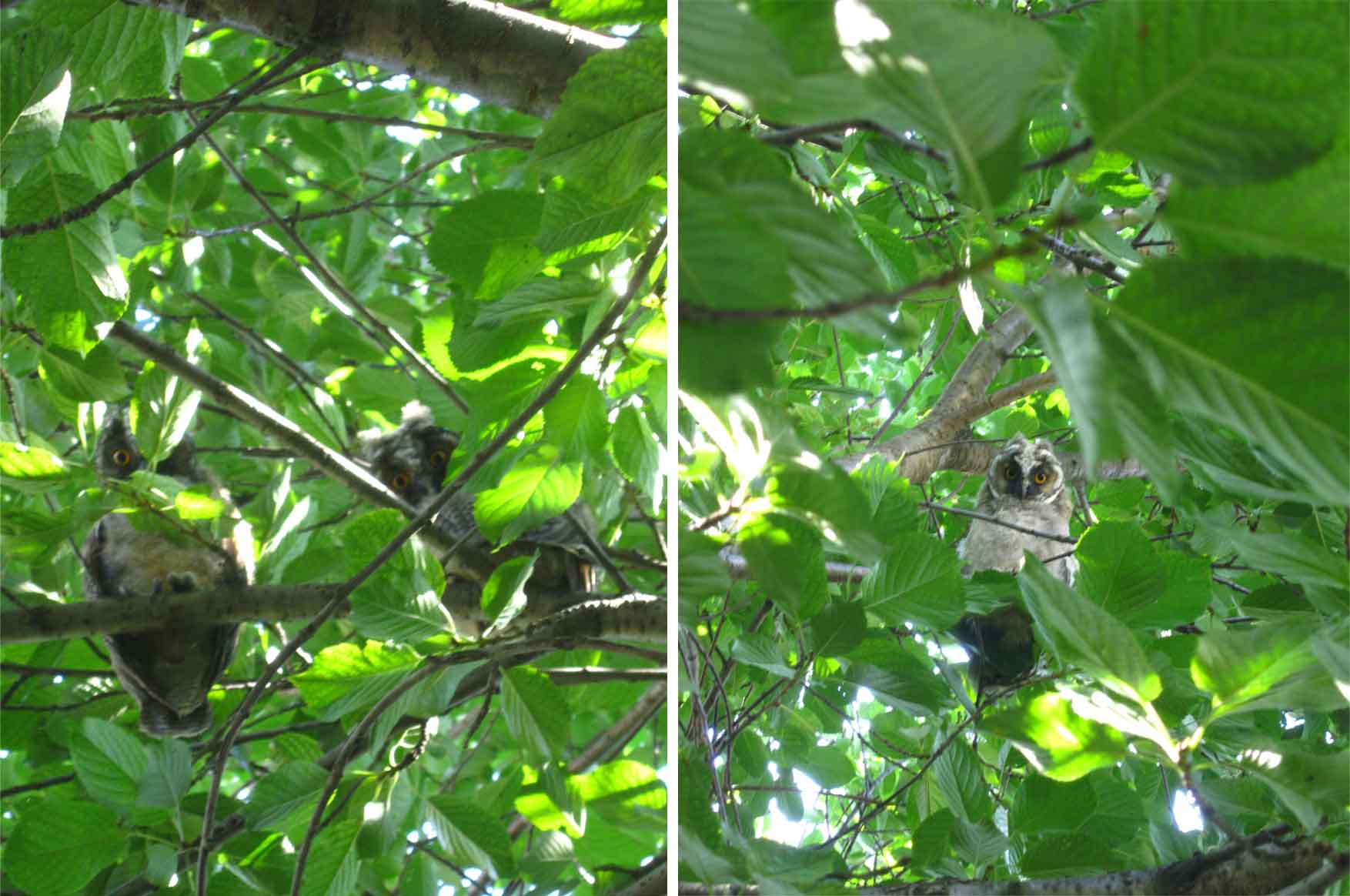 Bojan je otišao na pauzu ispod višnje posle ručka, pa me pozvao da vidim ko ga to posmatram koga to stalno gleda… kad ono: vratile se Sove!!! nekad ih je bilo četiri na višnji, a sad smo videli tri. najinteresantnije od svega je što su i one nas sve vreme promatrale, pratile svaki naš korak… a kad su shvatile da su bezbedne i da smo oduševljeni njihovim prisustvom, samo su se uspavale!